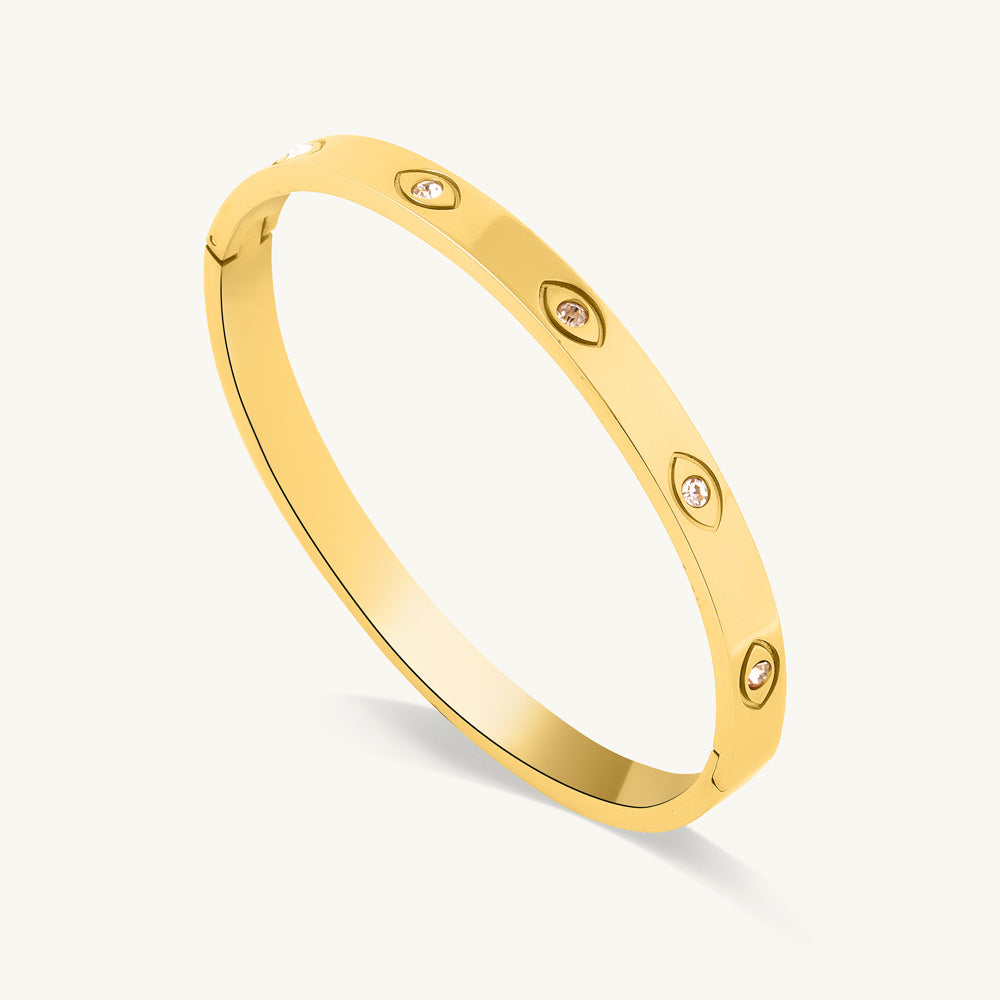 Timeless and elegant, this slim bracelet is adorned with delicate crystal accents that shimmer with every movement. Its refined design makes it perfect for daily wear while adding a touch of sparkle that transitions effortlessly to evening looks. Comfortable to wear yet eye-catching in its simplicity, it enhances any outfit with subtle glam, making it a versatile addition to your jewellery collection.