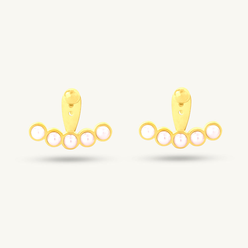 The Pearl Fan Radiance Studs are a luminous blend of elegance and charm, designed with radiant pearls fanned out in a graceful golden arc. Symbolizing purity and sophistication, these earrings bring a touch of timeless beauty to every occasion. Perfect for festive celebrations, work events, or thoughtful gifting, they add a refined sparkle that elevates any jewellery collection. A statement of grace that never goes out of style.